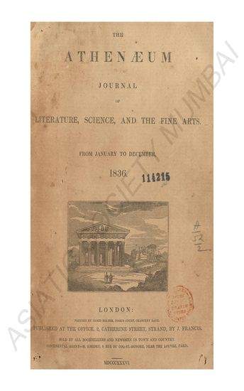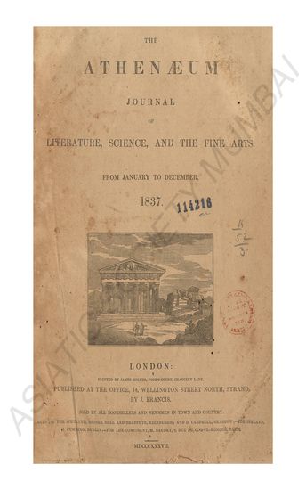 Athenaeum Journal of Literature Science and the Fine arts, January to December 1837.