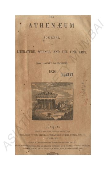 Athenaeum Journal of Literature science and the Fine arts, January to December 1838.