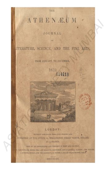 Athenaeum Journal of Literature science and the Fine arts, January to December 1839.