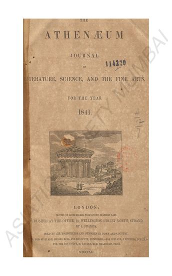 Athenaeum Journal of Literature science and the Fine arts, January to December 1841.