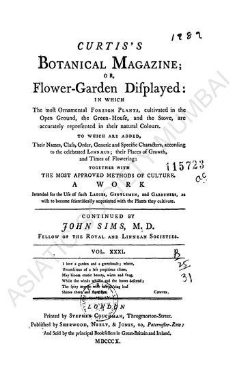 Curtis's Botanical Magazine; or Flower-Garden Difplayed, Vol. XXXI.