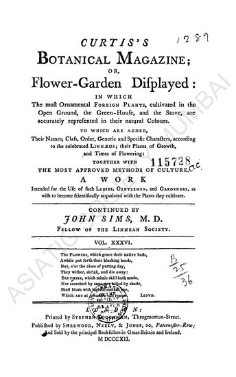 Curtis's Botanical Magazine; or Flower-Garden Difplayed, Vol. XXXVI.