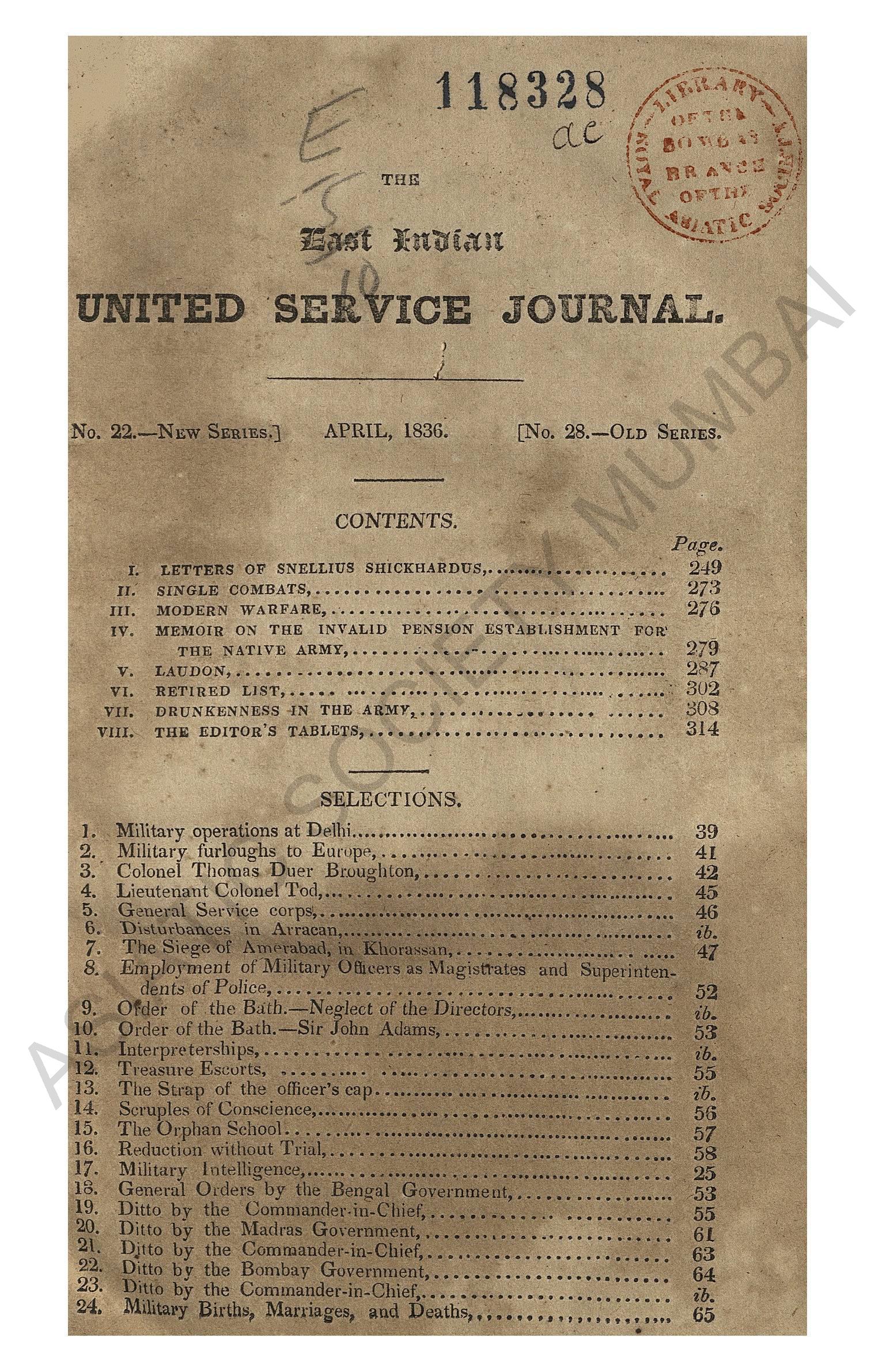 East Indian united service Journal and Military magazine. Vol. XI, 1837.