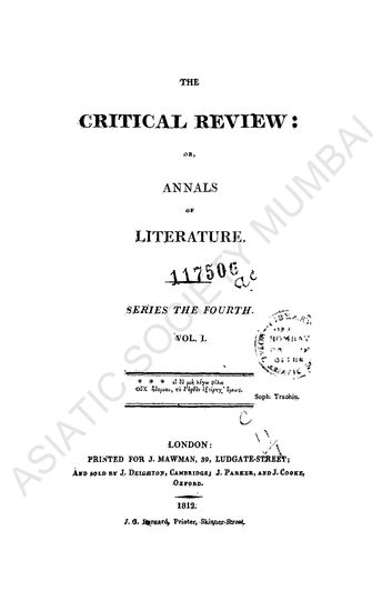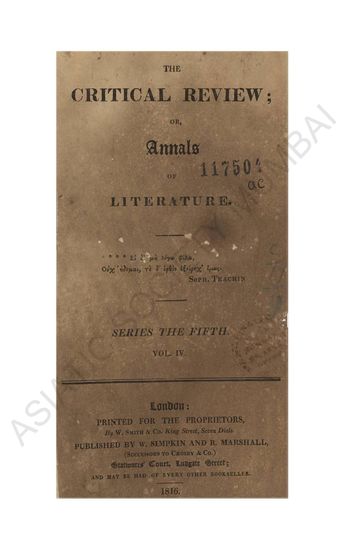 Critical Review, Series the Fifth Vol V January, 1817.