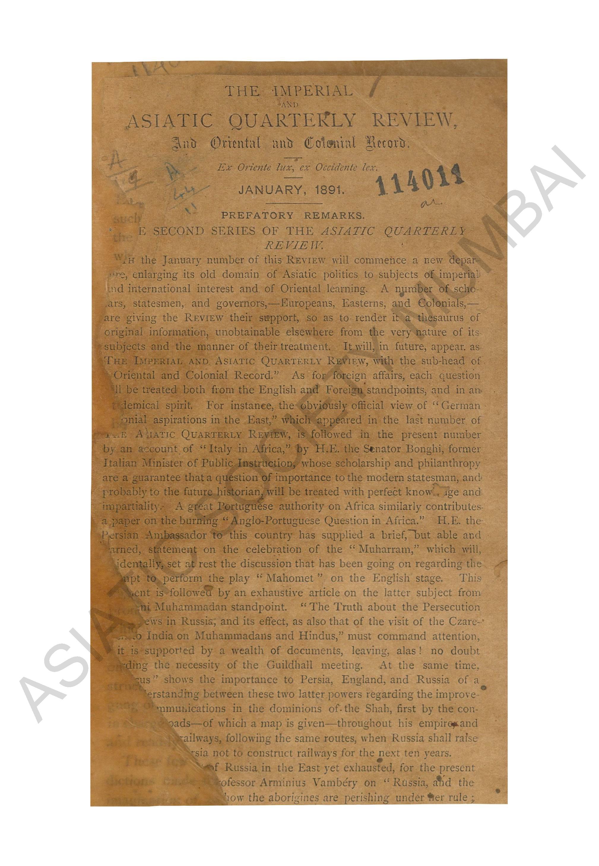 Asiatic quarterly review. Vol. VII, January - April, 1889.