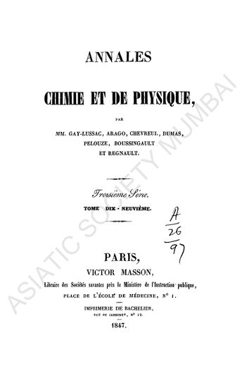 Annales de chimie et de physique, Third Serise, Vol. XIX.