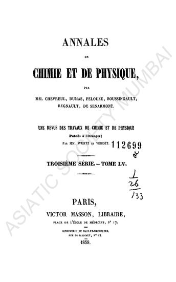 Annales de chimie et de physique, Third Series, Vol. LV ...