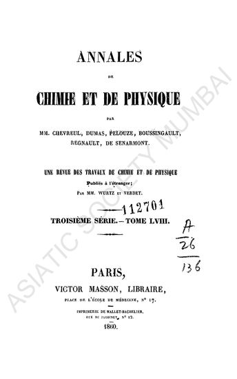 Annales de chimie et de physique, Third Series, Vol. LVIII.
