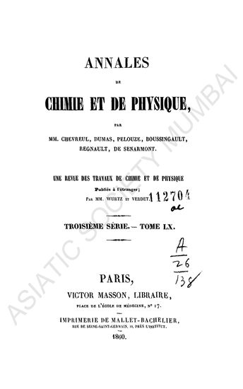 Annales de chimie et de physique, Third Series, Vol. LX.