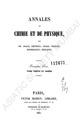 Annales de chimie et de physique, Third Serise, Vol. XXXI.
