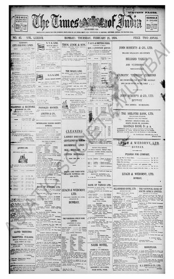 The Times Of India, 21 February 1924