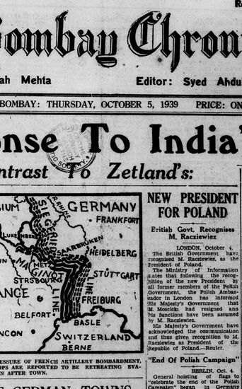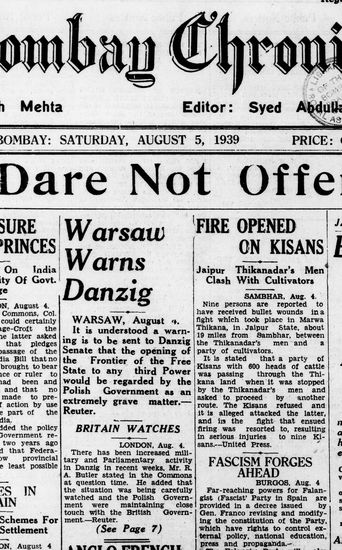 The Bombay Chronicle, 5 September 1939