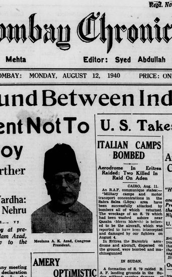 The Bombay Chronicle, 12 August 1940