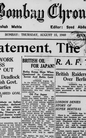 The Bombay Chronicle, 15 August 1940