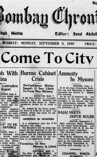 The Bombay Chronicle (Sunday / Weekly Edition), 11 Augu ...