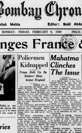 The Bombay Chronicle (Sunday / Weekly Edition), 25 Augu ...