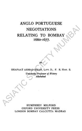 Anglo Portuguese Negotiations relating to Bombay, 1660-1677
