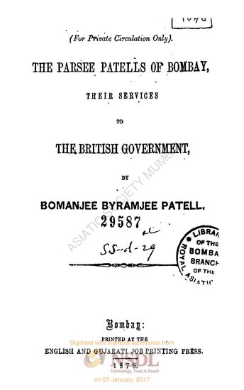The Parsee Patells of Bombay:Their services to the Brit ...