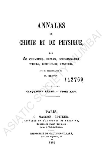 Annales de chimie et de physique, Fifth Series, Vol. XXV.