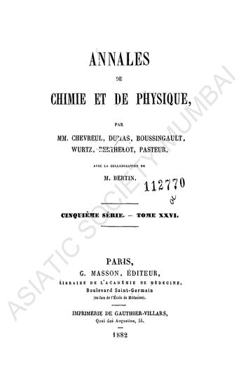 Annales de chimie et de physique, Fifth Series, Vol. XXVI.