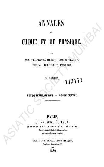Annales de chimie et de physique, Fifth Series, Vol. XXVII.