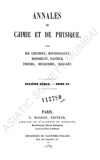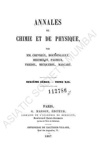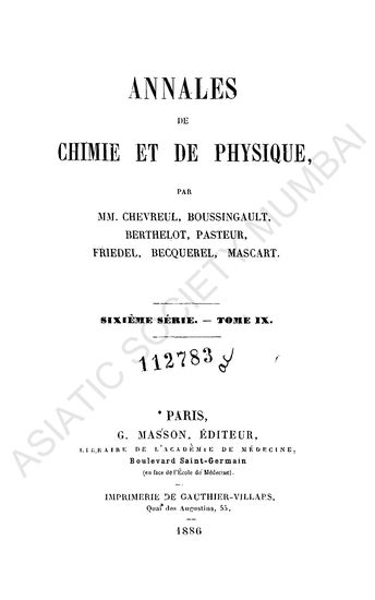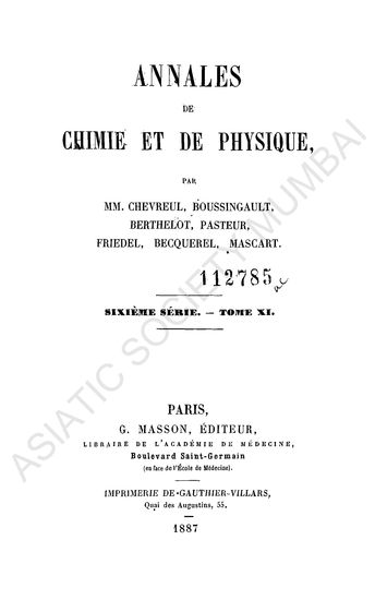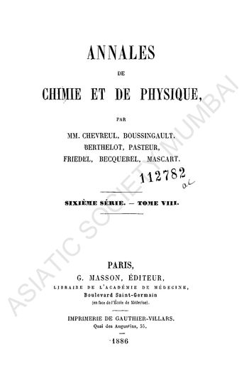 Annales de chimie et de physique, Fifth Series, Vol. XXX.