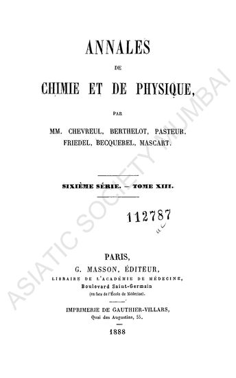 Annales de chimie et de physique, Six Series, Vol. XIII.