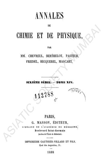 Annales de chimie et de physique, Six Series, Vol. XIV.