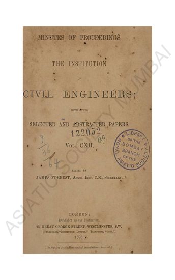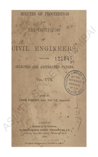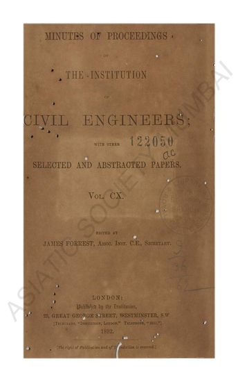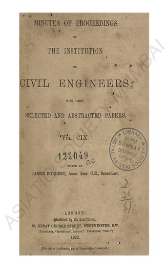 Minutes of Proceedings of the Institution Civil Engineers; with Other Selected and Abstracted Papers. Vol. CIX.