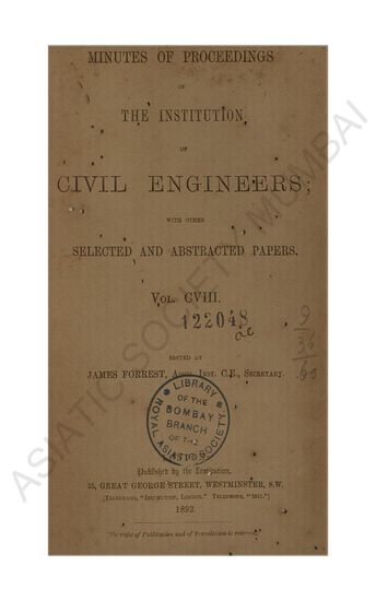 Minutes of Proceedings of the Institution Civil Engineers; with Other Selected and Abstracted Papers. Vol. CVIII.