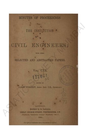 Minutes of Proceedings of the Institution Civil Engineers; with Other Selected and Abstracted Papers. Vol. CXX.