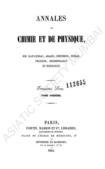 Annales de chimie et de physique, Third Serises, Vol. XI.