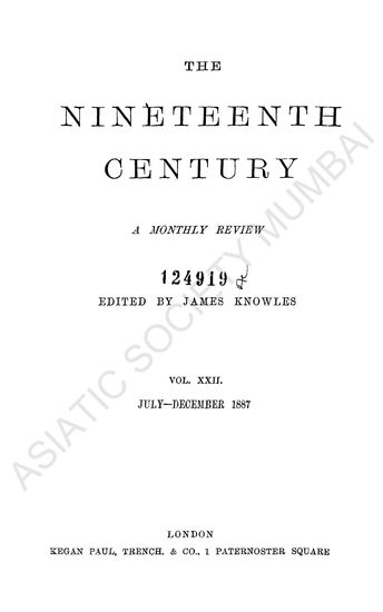 Nineteenth Century: A Monthly Review, Vol. XXII, July-December 1887.