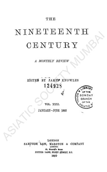 Nineteenth Century, Vol. XXXI, January-June 1892.