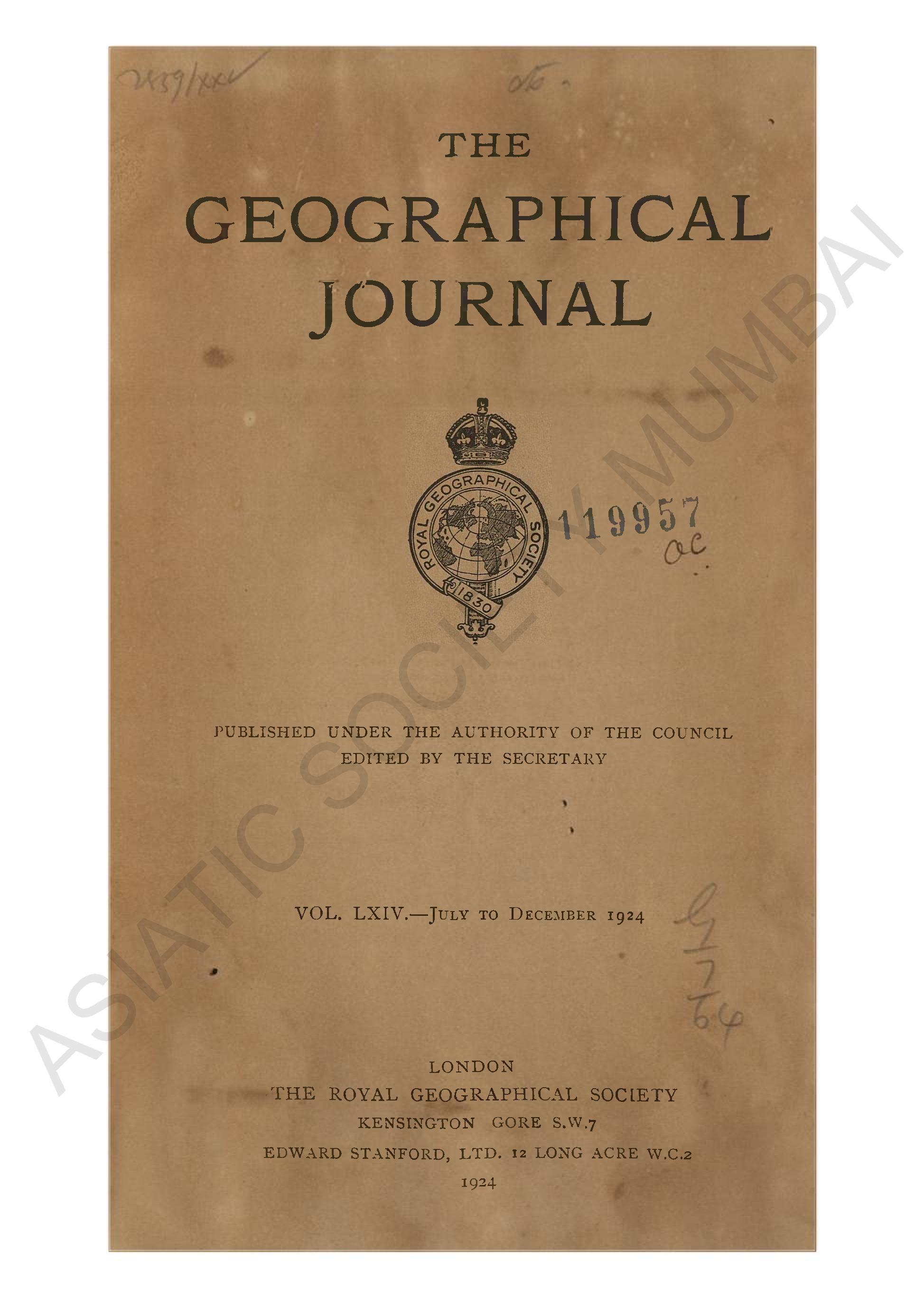 Geographical Journal. Vol. LXIV. - July to December, 1924.
