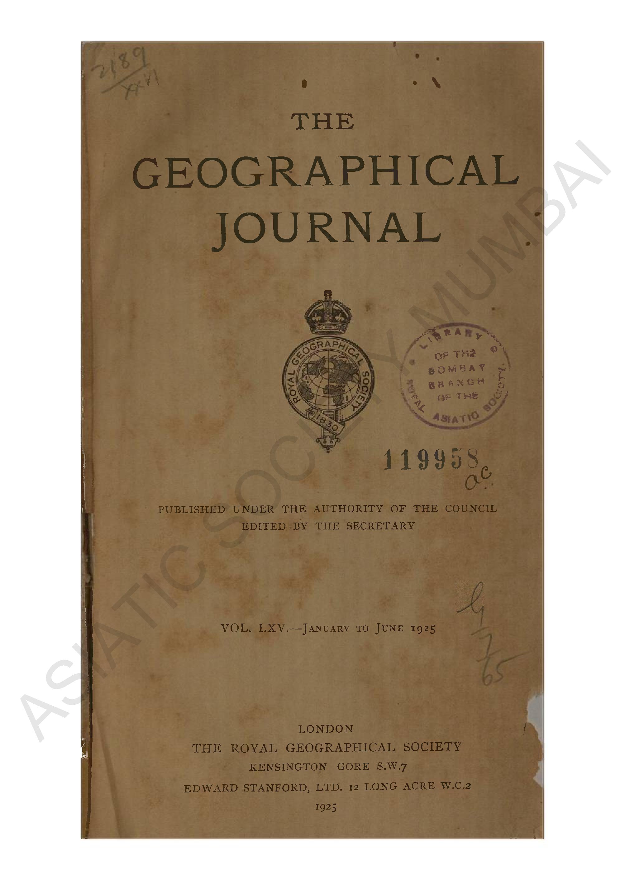 Geographical Journal. Vol. LXV. - January to June, 192 ...