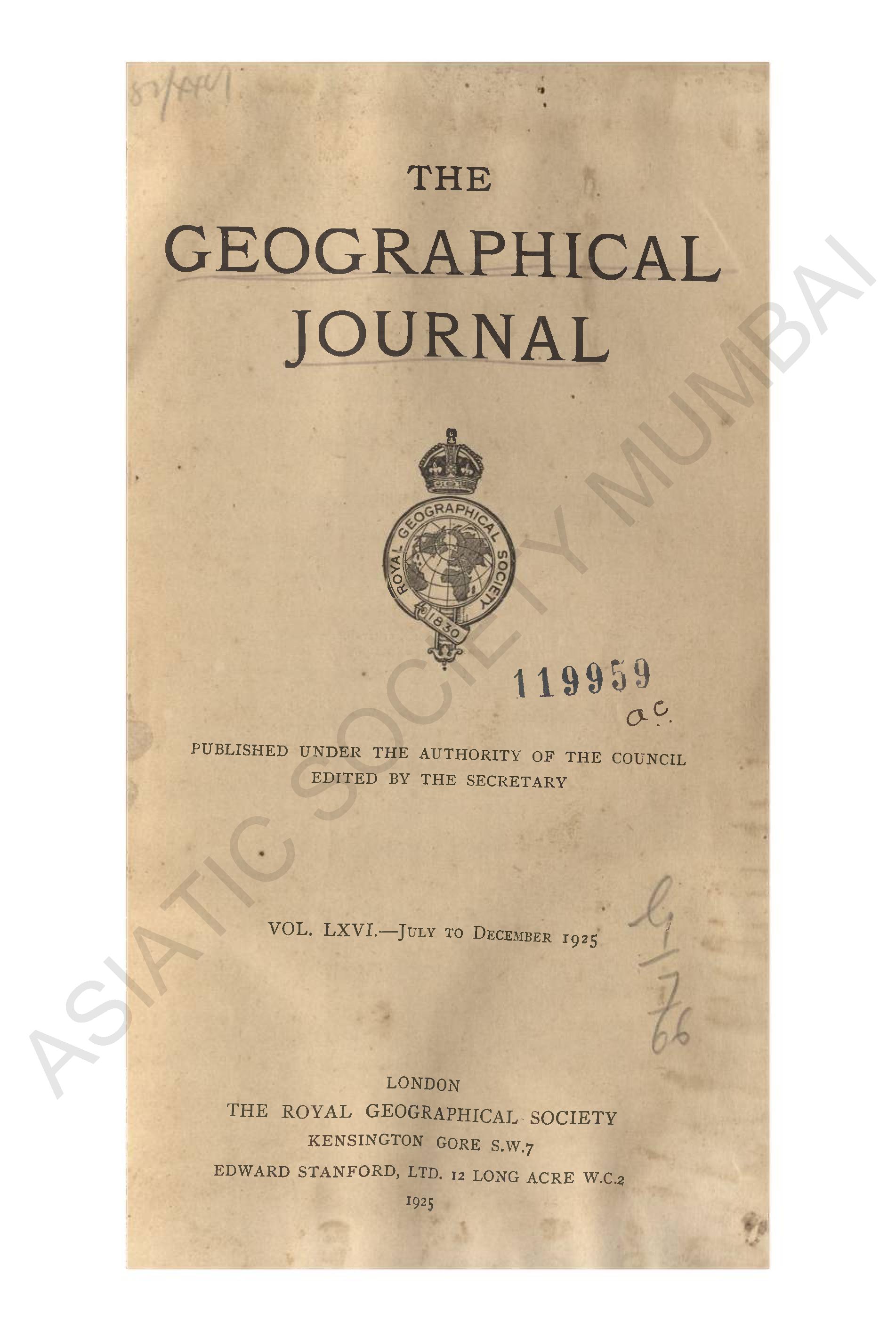 Geographical Journal. Vol. LXVI. - July to December, 1925.