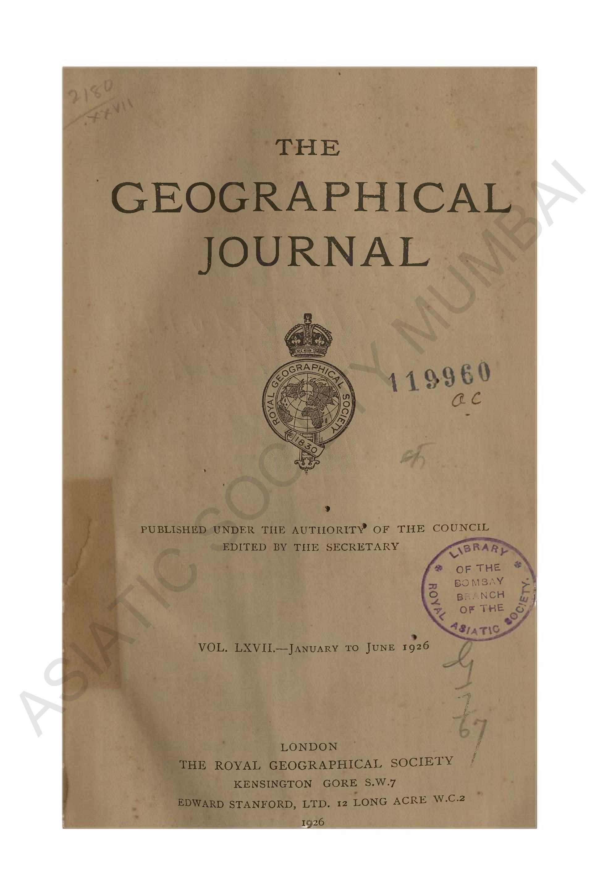 Geographical Journal. Vol. LXVII. - January to June, 1926.