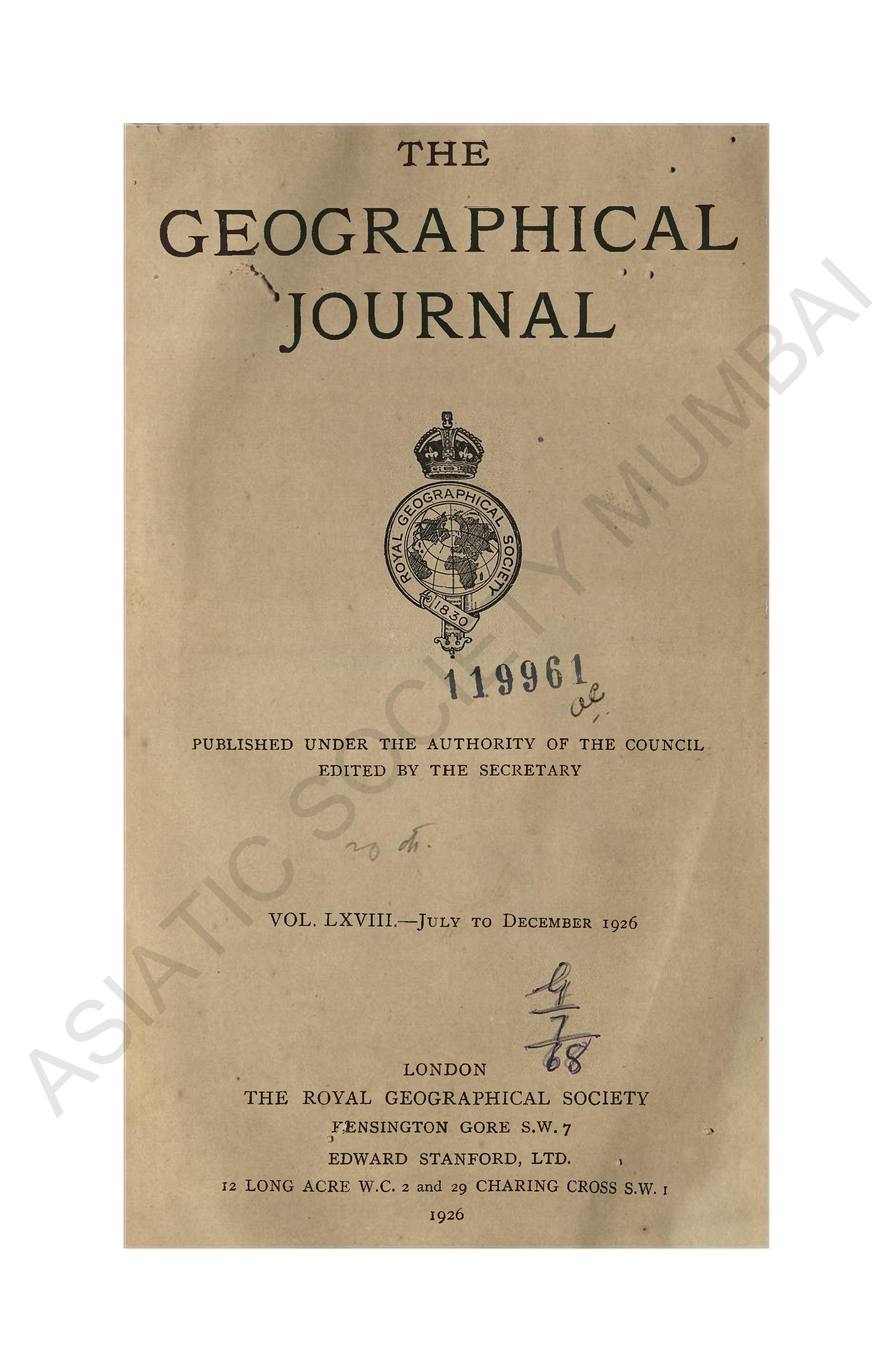 Geographical Journal. Vol. LXVIII. - July to December, 1926.