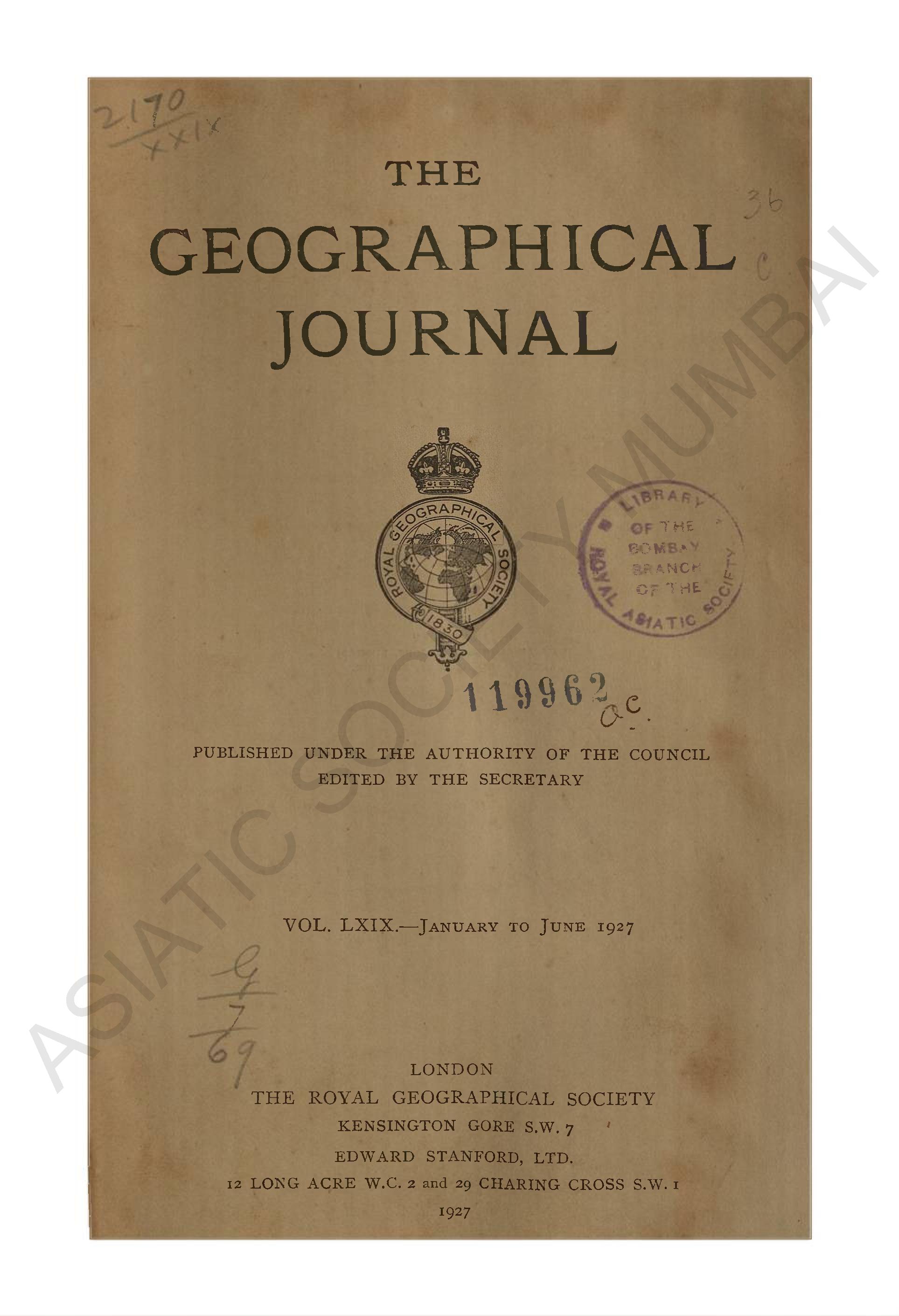 Geographical Journal. Vol. LXIX. - January to June, 19 ...