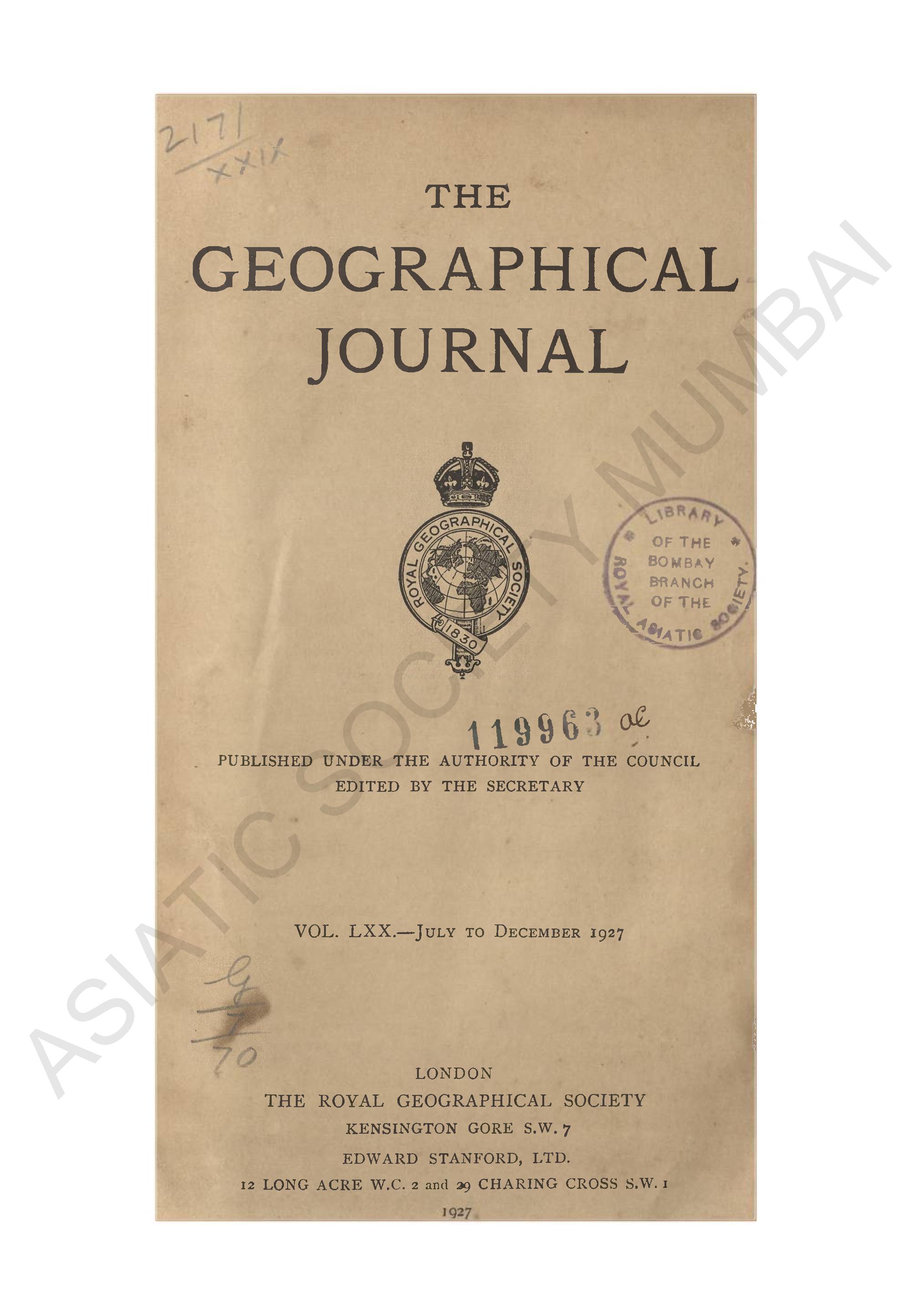 Geographical Journal. Vol. LXX. - July to December, 1927.