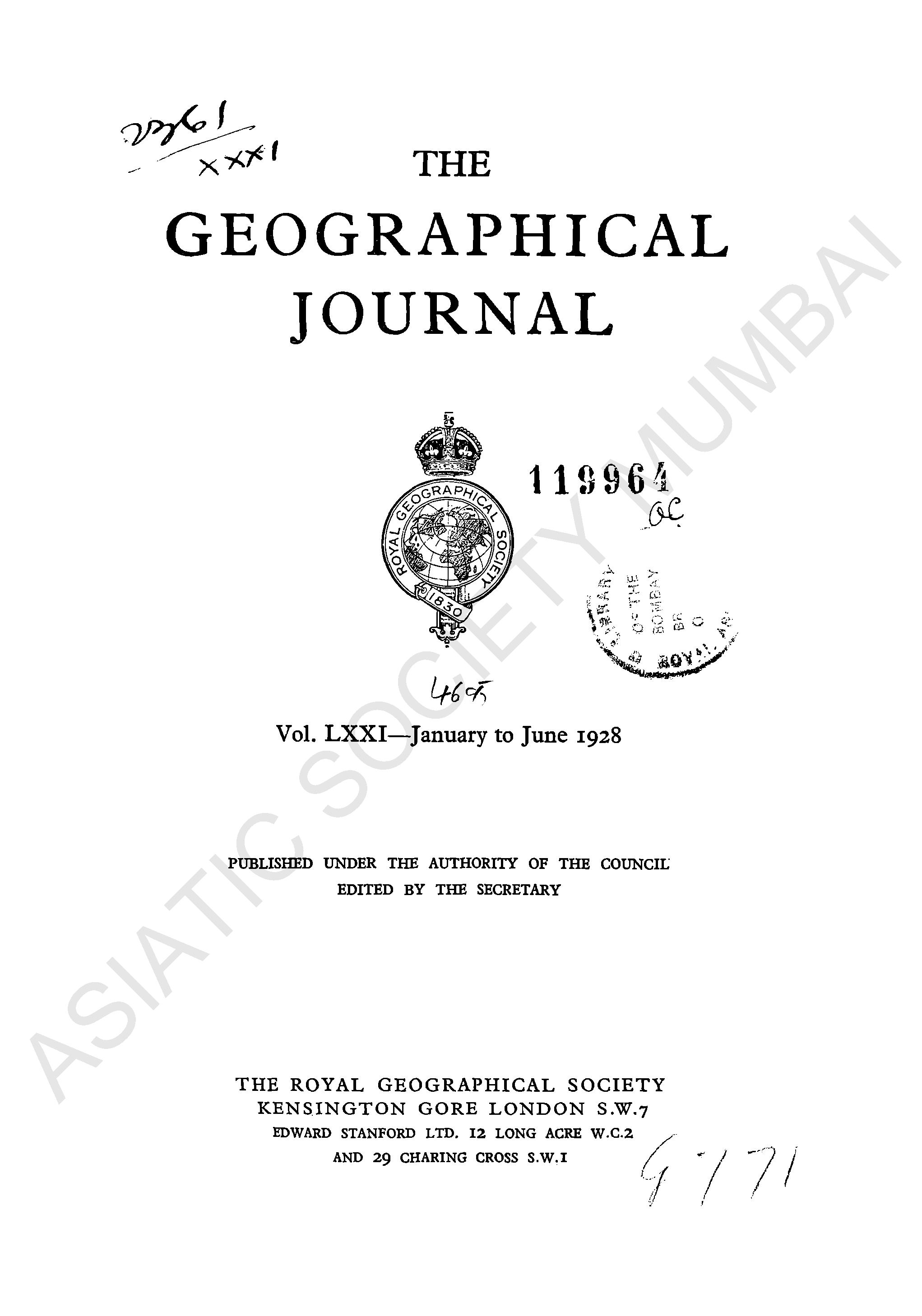 Geographical Journal. Vol. LXXI. - January to June, 1928.