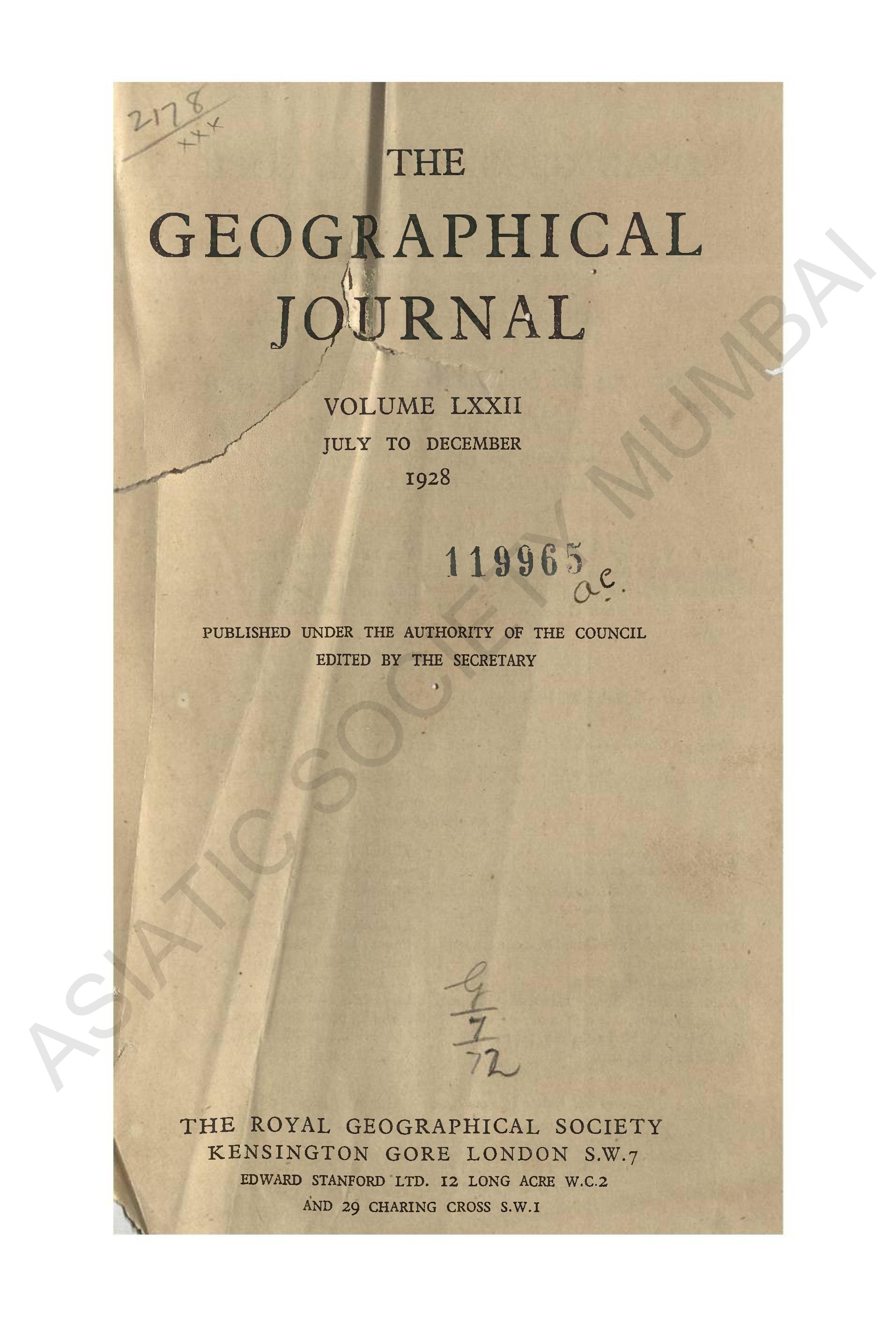 Geographical Journal. Vol. LXXII. - July to December, 1928.
