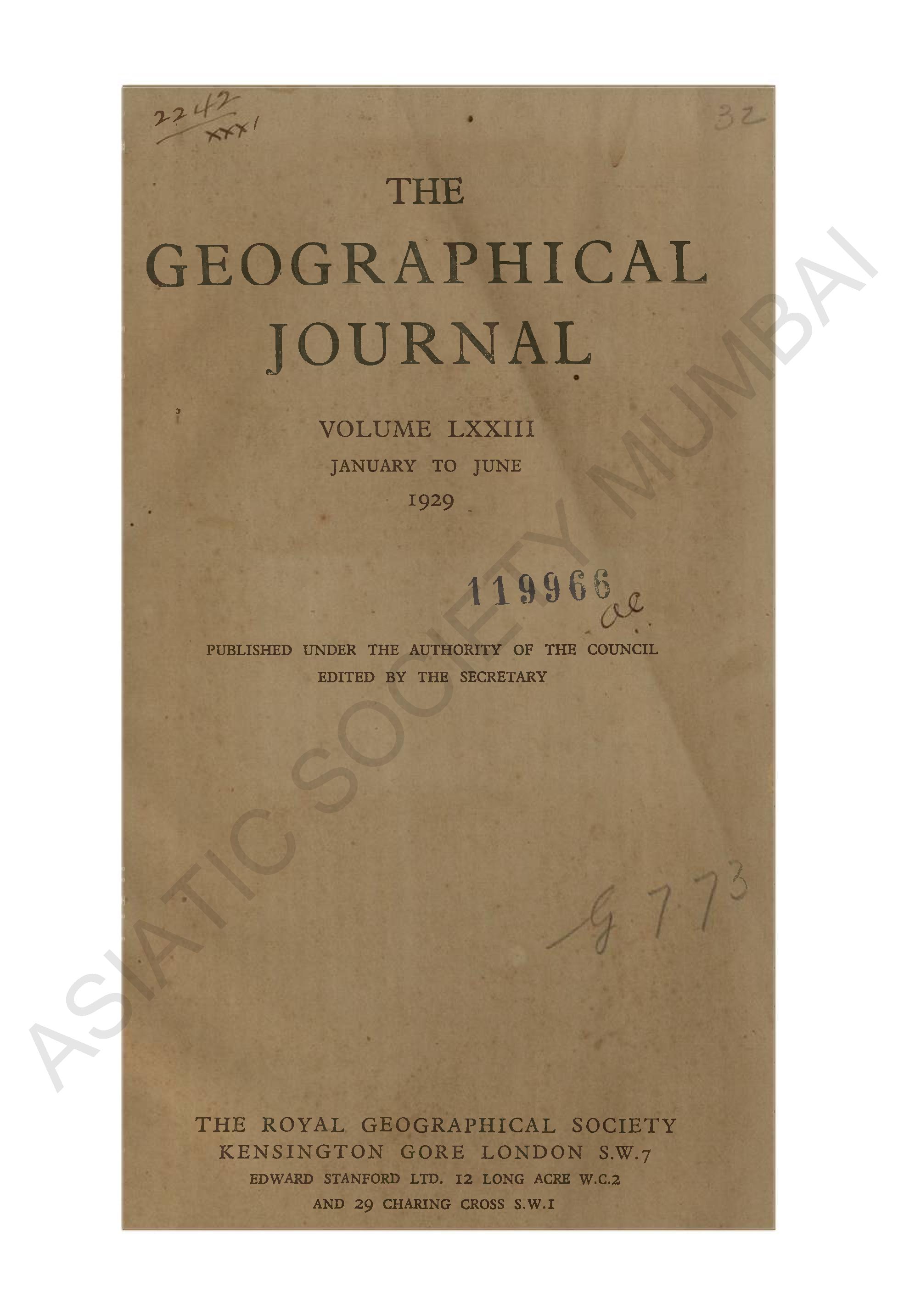 Geographical Journal. Vol. LXXIII. - January to June, 1929.
