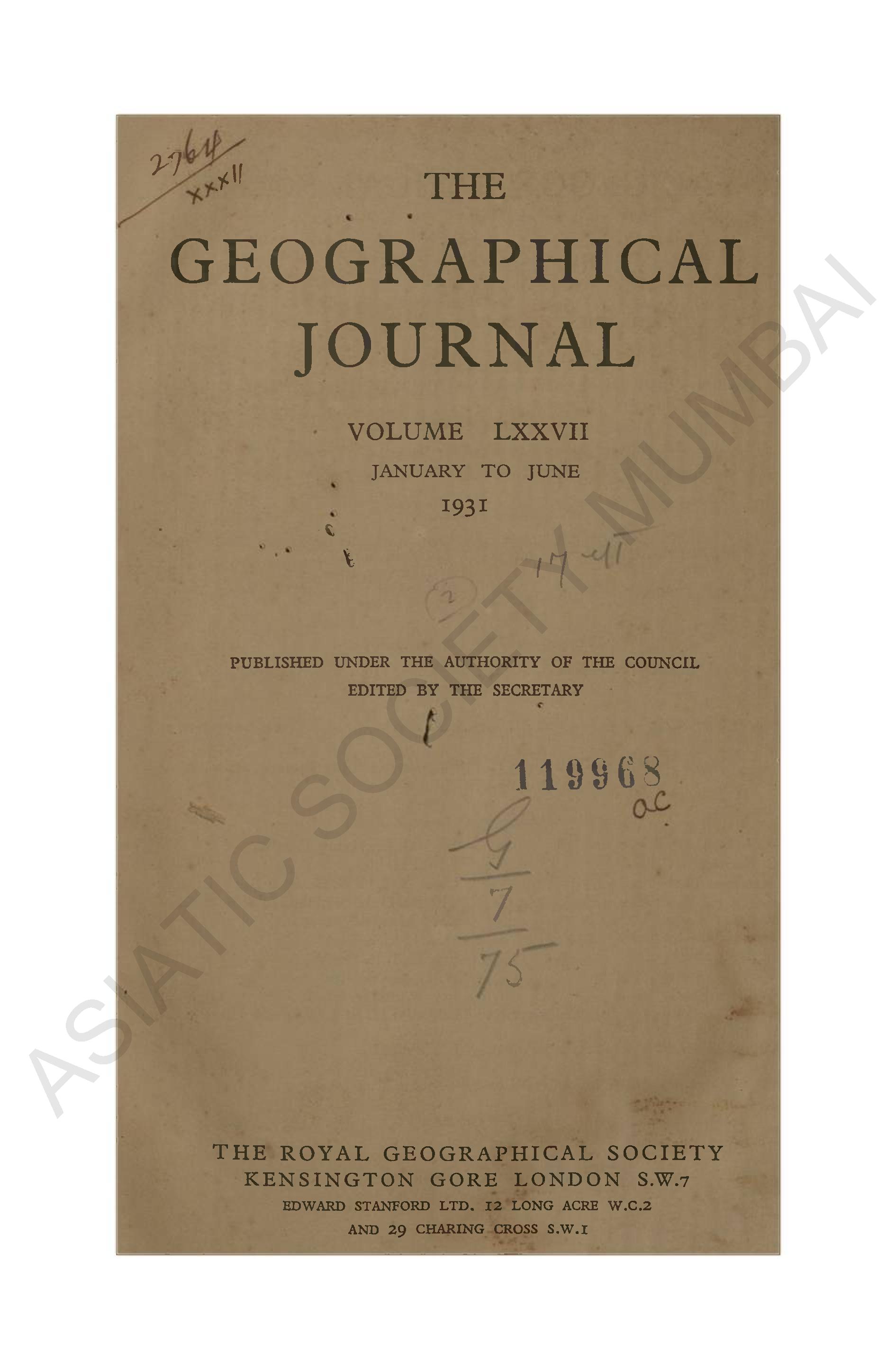 Geographical Journal. Vol. LXXVII. - January to June, 1931.