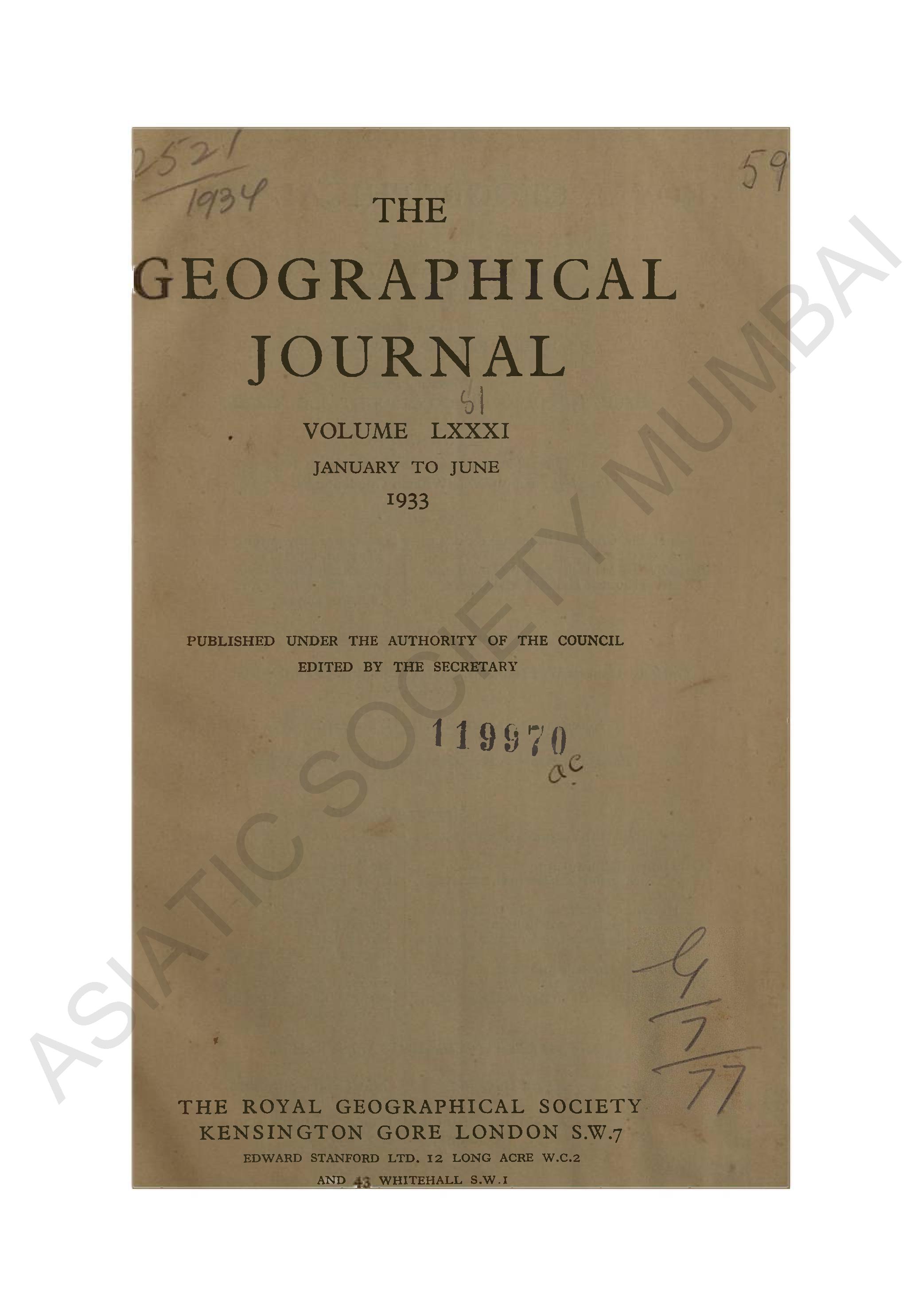 Geographical Journal. Vol. LXXXI. - January to June, 1933.
