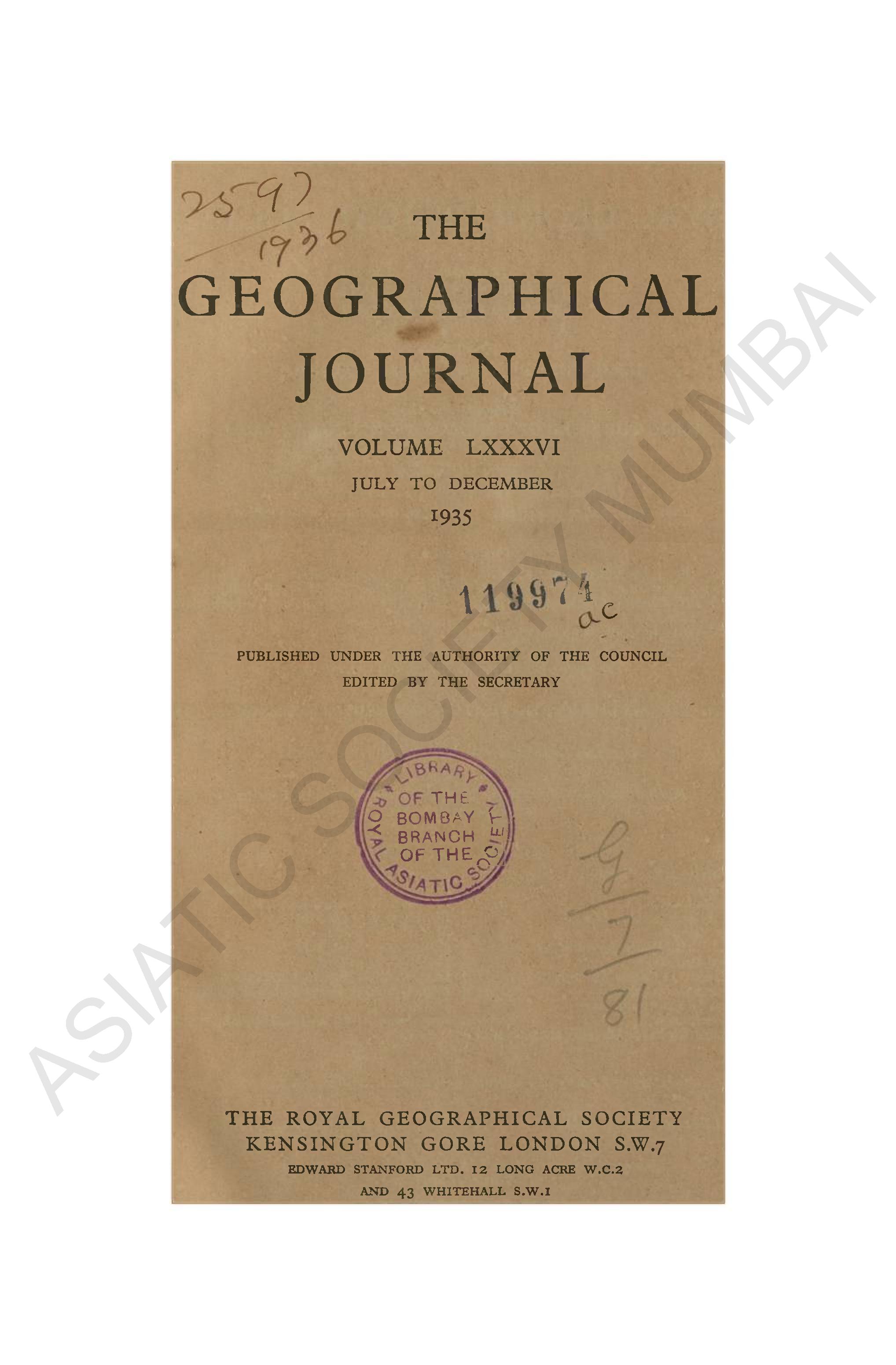 Geographical Journal. Vol. LXXXVI. - July to December, 1935.