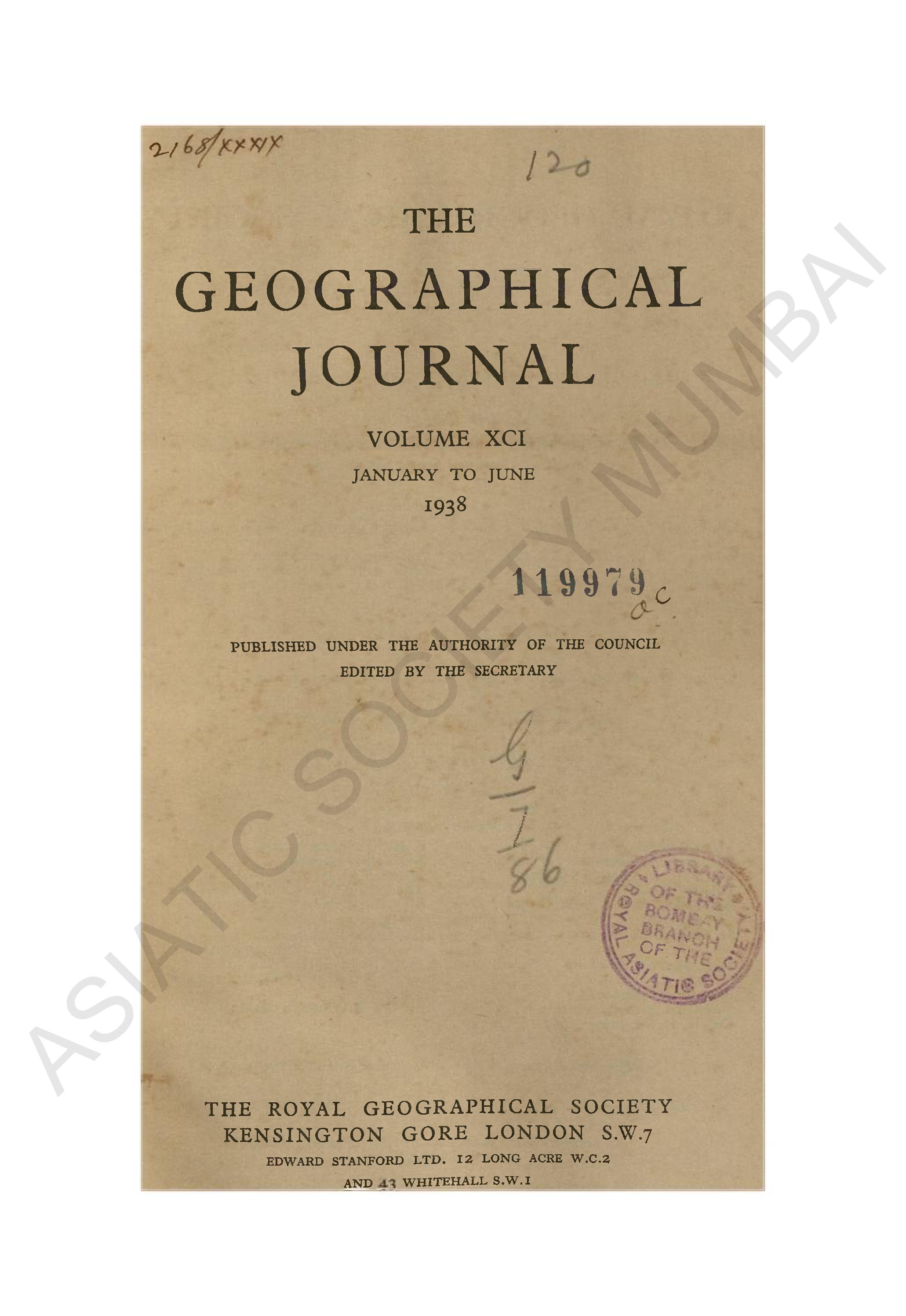 Geographical Journal. Vol. XCI. - January to June, 1938.