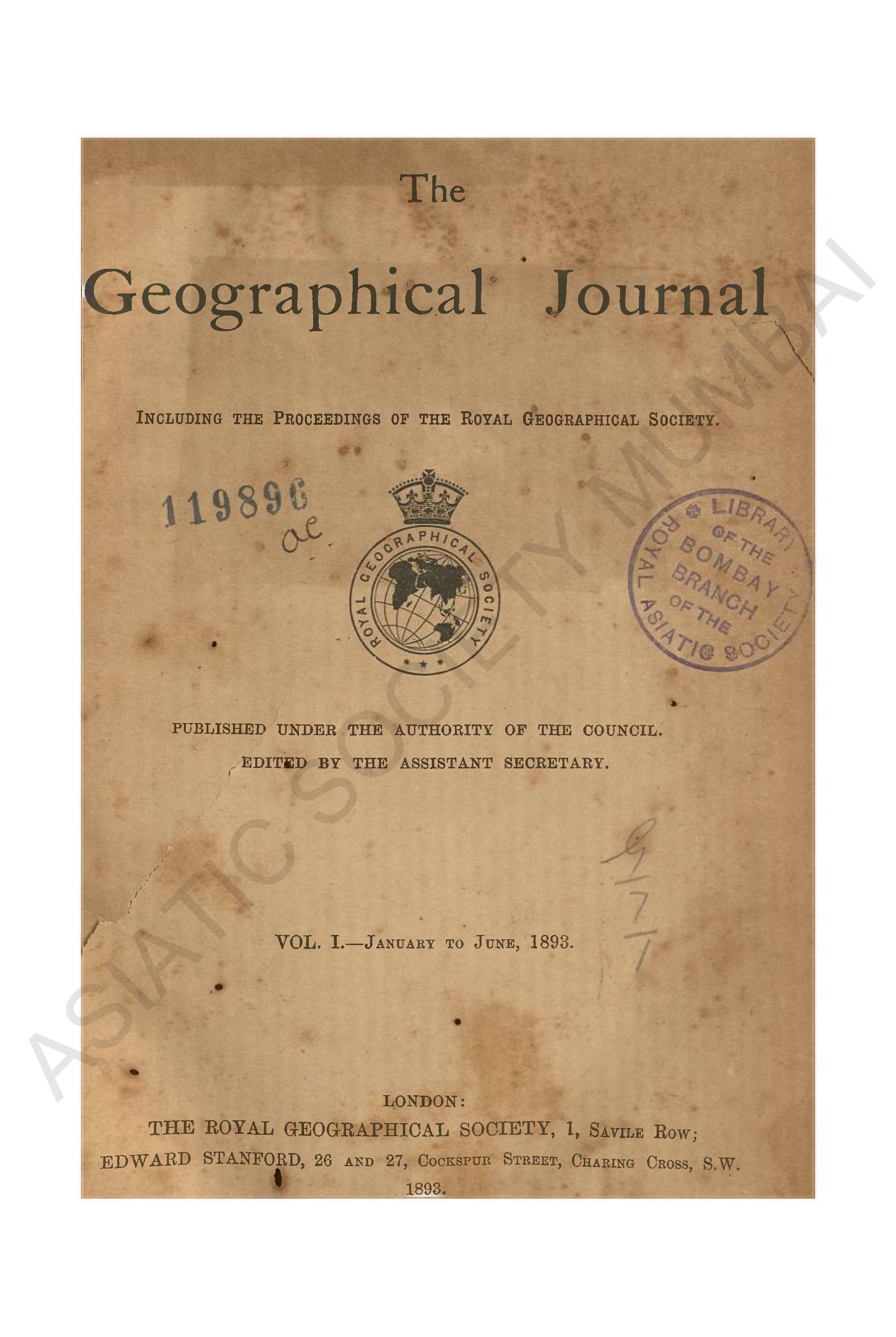 Geographical Journal. Including the proceedings of the Royal Geographical Society. Vol. I. - January to June, 1893.