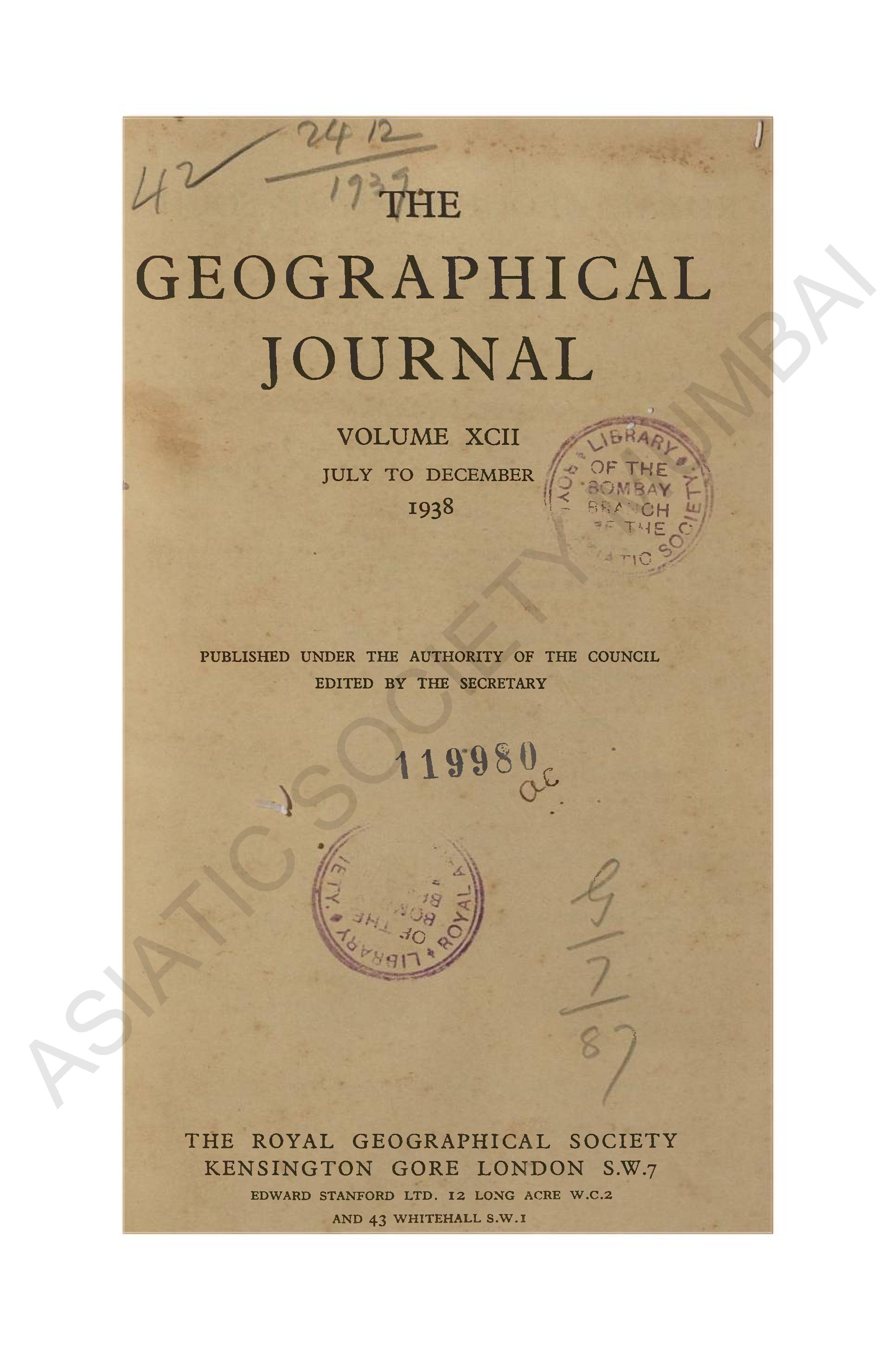 Geographical Journal. Vol. XCII. - July to December, 1938.